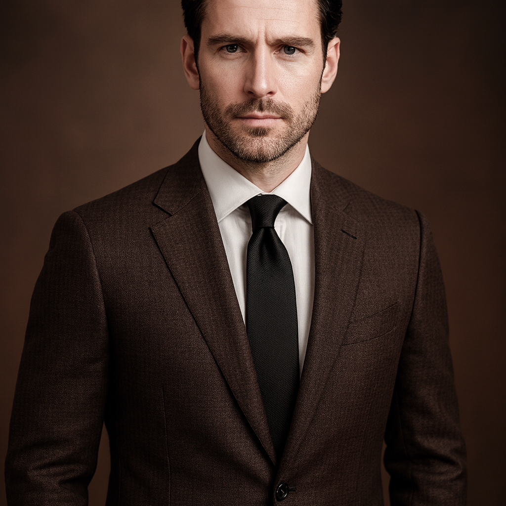 Exclusive Italian fabric personally selected by Samuel2in1. A rich dark espresso tone with a luxurious smooth texture — perfect for refined and sophisticated tailored suits.