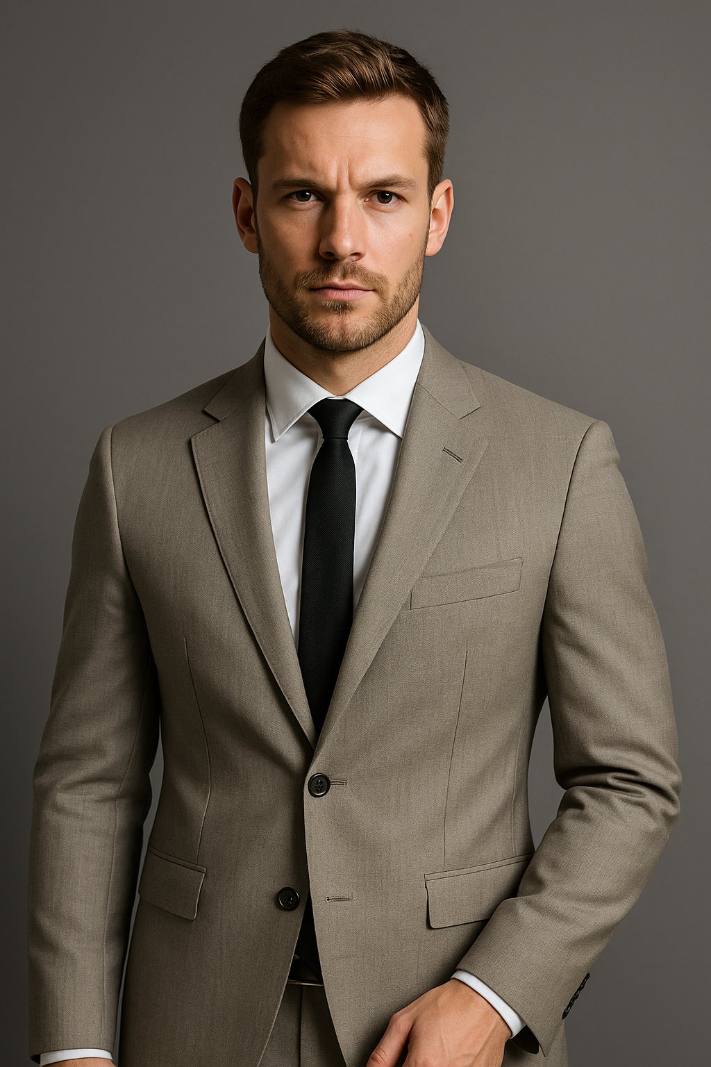 Exclusive Italian fabric personally selected by Samuel2in1. A refined light taupe tone with a smooth and elegant texture — an excellent choice for premium tailored suits.