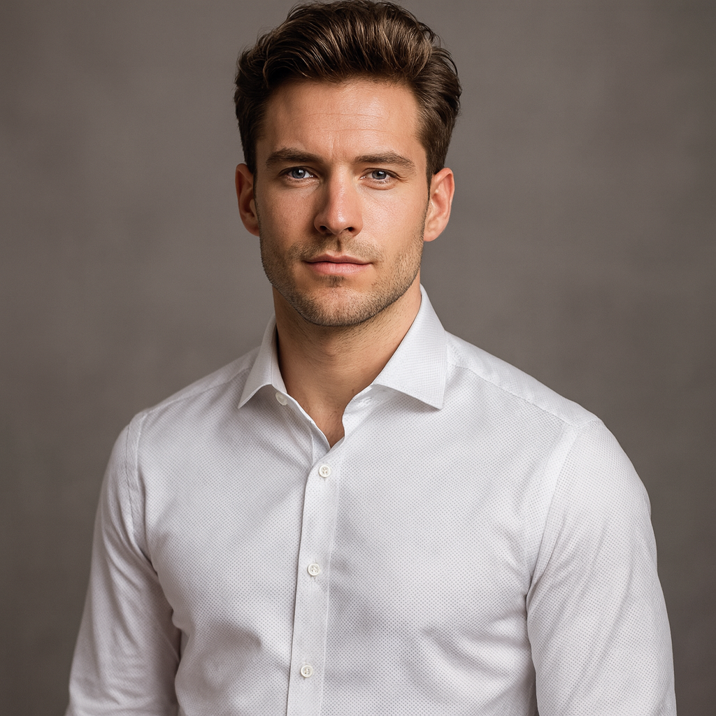 Premium shirting cloth with a subtle micro-texture weave. Ideal for tailored dress shirts, school uniforms, and formal wear.
